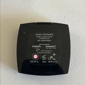 Sophisticated black powder blush compact with iconic Chanel logo. Ideal for daily essentials.