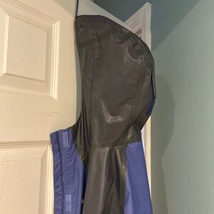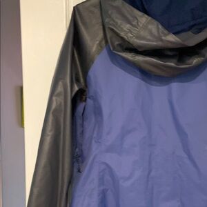 Experience ultimate comfort and protection with the Columbia Rain Jacket. This blue and gray jacket is crafted for outdoor enthusiasts, featuring a water-resistant design and a stylish color-blocking effect.