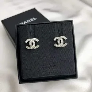 CHANEL Classic Mini CC Studs in Silver Crystal