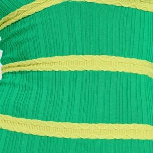 Good things are coming your way… like The AKIRA Label Feeling Lucky Midi Dress. This bright bodycon is crafted from a stretchy, ribbed knit material and boasts a plunging neckline, long sleeves, and a contrasting textured striped pattern throughout. Complete with a curve-hugging silhouette, a midi length, and an effortless, pull-on fit. Style it with kitten heels, an oversized denim jacket, and a leather clutch to shamrock shuffle in style.