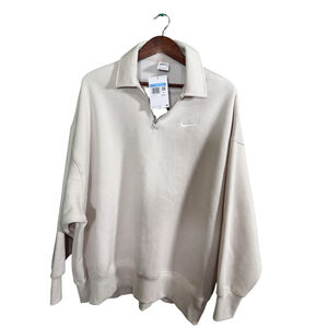 Women's Nike Beige Half-Zip Oversized Pullover Sweatshirt Size M
