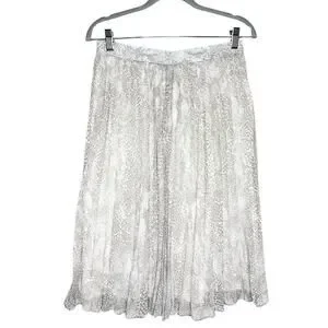 Ann Taylor Pleated Snakeskin Accordion Midi Skirt Size 6P White Gray Office
