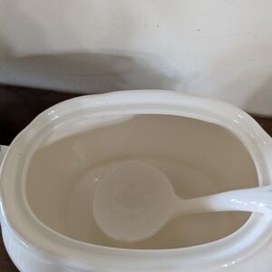 Additional Features: Lid, handles, and a ladle. Ladle does have a small chip