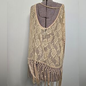 Staring at Stars Bohemian Style Tan Floral Lace Fringe Trim Blouse Top SZ Large