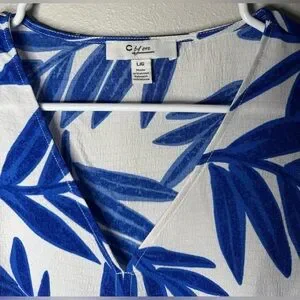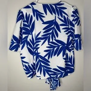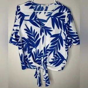 C by one Blue and White Relaxed Tie Front Blouse tropical leaves flowy sz large