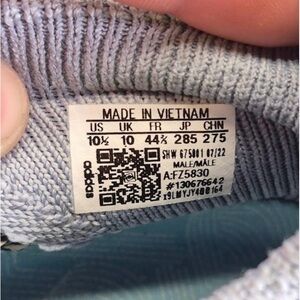 Size 10.5 Experience the perfect blend of style and comfort with these adidas sneakers, featuring a modern blue and black knit pattern. Designed for breathability and flexibility, they seamlessly transition from casual outings to athletic activities.