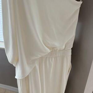 Halston Heritage White Wide Leg Jumpsuit with Asymmetrical Sleeve