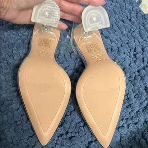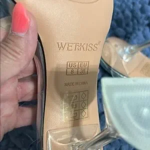 Never worn. Elevate your style with these glamorous Kiss heels, featuring a sophisticated silver hue and dazzling rhinestone embellishments. The sleek stiletto design adds a touch of elegance, while the transparent material offers a modern twist. Perfect for special occasions, these heels are a must-have for any fashion-forward wardrobe.