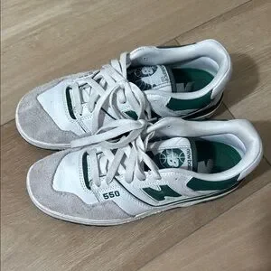 New Balance 550 White and Green Classic Sneakers (Men size 6.5/ women size 8)