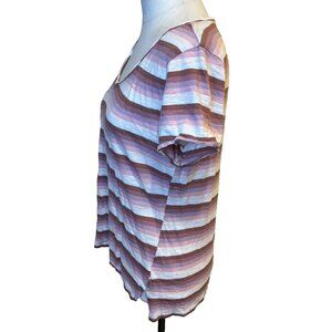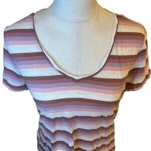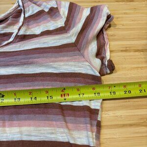 Lucky Brand Women's T-shirt Size Small Pink Striped V-Neck Short Sleeve