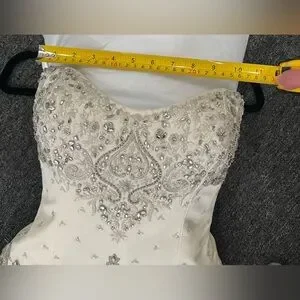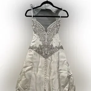 Platinum Priscilla of Boston Elegant Ivory Crystal Embellished Wedding Dress