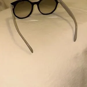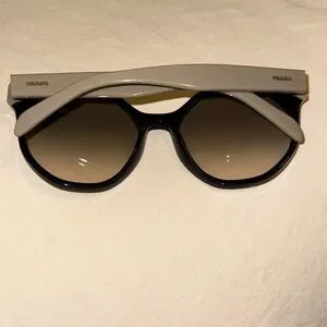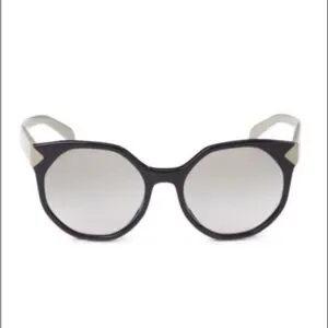 These beautiful and unique preowned Prada sunglasses feature a sleek deep purple round frame with gray temples and gradient lenses, offering a perfect blend of style and sun protection. Accompanied by a Prada lens cleaning cloth and a Prada sturdy protective case, these accessories ensure your sunglasses remain in pristine condition. Ideal for any occasion, they add a touch of luxury to your everyday look.