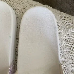 @workmomboutique thank you for posting! I have 9 different pairs of these. The glitter and fur ones. And some have those holes in the bottom and some don’t. I have these exact ones, but I wanted an extra pair cause they are white and we get dirty fast. All of mine except two pairs don’t have the holes and I’ve noticed that the ones with holes have a very hard bottom extremely hard bottom and the ones without holes have a more cushion bottom.