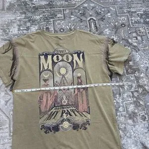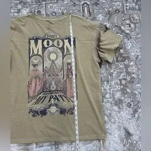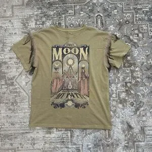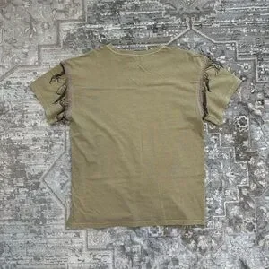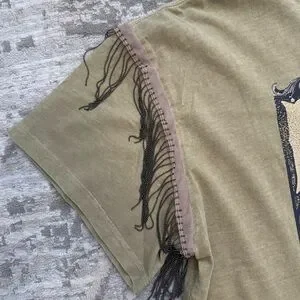 Embrace a retro vibe with this Buckle tee, featuring a striking vintage-style graphic on a refreshing green backdrop. The short sleeves and relaxed fit make it perfect for everyday wear, while the intricate design adds a unique touch to your casual wardrobe. Tassles on the sleeves. NWOT