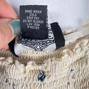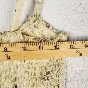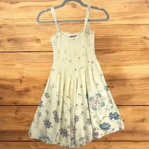 Angie Ruched M Floral Kids Dress in Cream and Blue Sleeveless Flowy Cottagecore