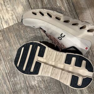 On Running White and Brown Sneakers with CloudTec Technology