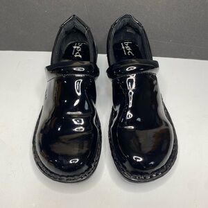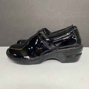 BOC Born Concept Shoes Womens 10 Wedge Clogs Black Patent Pleather Slip On