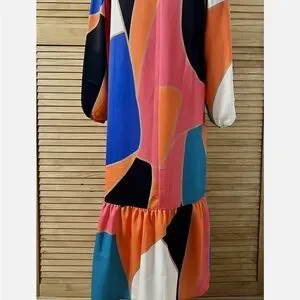 Never Fully Dressed Blue Pink Long Sleeve Maxi Dress Sundress - US 8 / UK 12