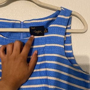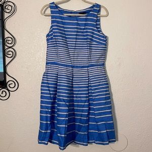 Taylor Textured Striped Blue & White Fit & Flare Dress w/ Pockets;