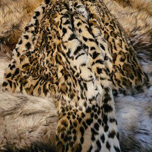 Vintage Express faux cheetah fur cropped coat is definitely a head turner. This jacket has a soft hand and is perfect for any casual event. A small it measures 19" long from the bottom of the collar to the hem, 36" bust, 17" shoulders (across the back), and 23" sleeves. All my items come from a pet and smoke free home and are odor free. Please check my page weekly for more new and pre-owned furs and faux furs.
