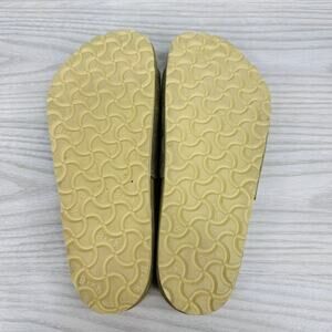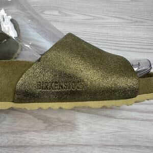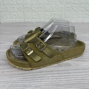 Birkenstock Vaduz Slide Sandals Sz 38 Gold Metallic Suede Leather Slip On Buckle
