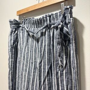 KNOX ROSE Women’s Blue/White Straight Wide Leg Crop Linen Blend Stripe Pants L