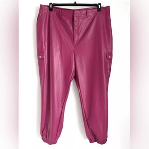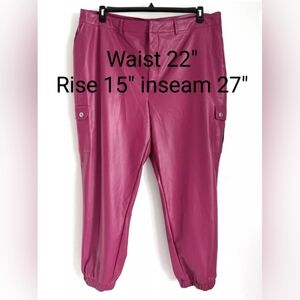Elevate your style with these chic pink/fuchsia joggers. Perfect for any occasion, it offers both comfort and elegance. Gold hardware. Side pockets. Softly lined inside (see picture of tags). Pairs well with white or black tops or same color as pictured! Approx measurements