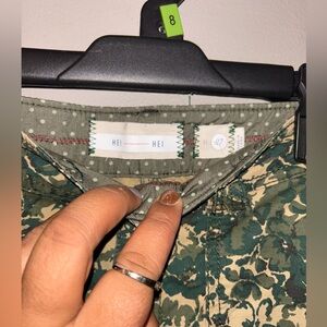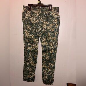 Anthropologie Hei Hei Sylvan Green/Tan Camo Floral Straight Leg Roll Up Pants