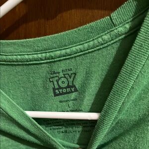 Embrace your playful side with this Disney short sleeve tee, featuring a charming cartoon Rex graphic in green and white. The shirt's vibrant colors and whimsical design make it a standout piece for any casual occasion. Crafted for comfort, this tee is perfect for adding a touch of fun to your wardrobe.If you favorite character is Rex you’ll love it. Wear it for comfort or to the parks