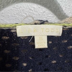 Stylish knit top by Lisa Todd. Features navy and cream colors. Perfect for casual wear.