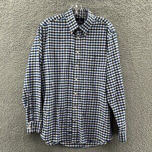 Stafford Travel Shirt Mens 16 34–35 Long Sleeve Blue Plaid Wrinkle Free Oxford