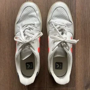 Veja V-90 leather men’s sneaker with blue and orange trim. Size 9 US. Worn but still in good shape.