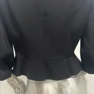 Musani Couture Black Ruffled Bow Front Peplum Satin Blouse Top EUR 42 Evening