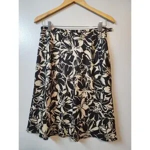 Ann Taylor Womens Vintage Tropical 100% Silk Floral Knee Length Skirt Size 6P