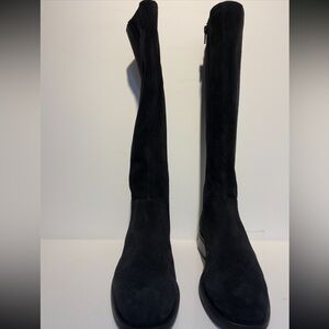 Sheila is the refined tall boots wih a classic appeal. The style is crafted from black suede with a rounded toe shape, elastic panels at the back and a zip-side fastening. The low heels measure 38mm. Details include pull-on tabs.