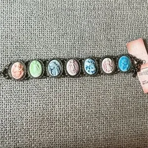 This elegant bracelet features intricately designed cameo stones in a variety of colors, perfect for adding a touch of sophistication to any outfit.