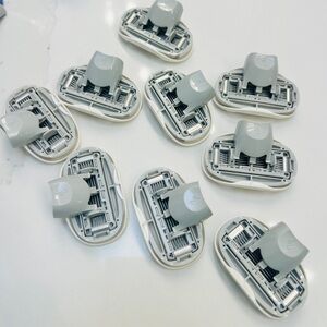 Lot includes one razor handle with attachment for hanging in shower along with 9 unused refills
