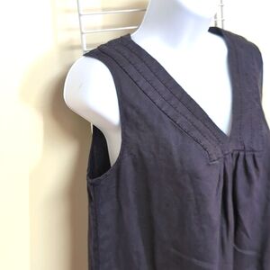 J. Jill Small Women's Black 100% Linen V Neck Sleeveless Knee Length Shift Dress