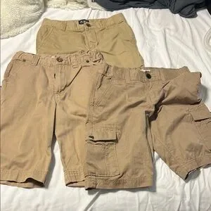 Set of three tan cargo shorts. Perfect for casual wear. Minimal wear great condition for summer sale!