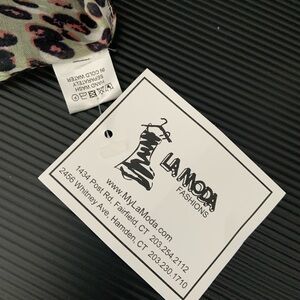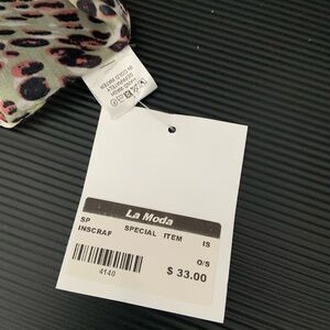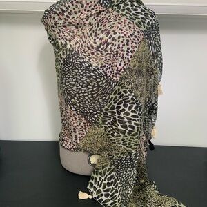 Elevate your style with this chic leopard print scarf. Featuring a blend of green and black, it's perfect for adding a touch of elegance to any outfit. Also has pink and brown NWT 100% cotton made in India purchased at a local boutique for $33