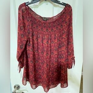 Love & Legend Red Smocked Blouse with Tie Sleeves.