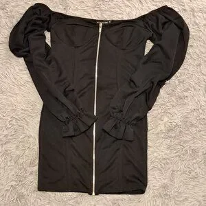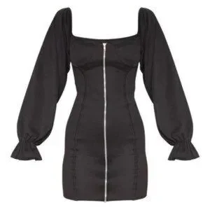 PrettyLittleThing Women's Black Zip up cup detail dress | Size 6