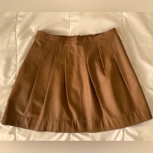 This stylish mini skirt by Rebecca Taylor showcases a rich brown color and a classic A-line shape. The pleated design adds texture and movement, making it ideal for both casual and work occasions. Its clean waistband and structured fabric offer a polished and versatile look. Great condition, super soft genuine lamb leather.