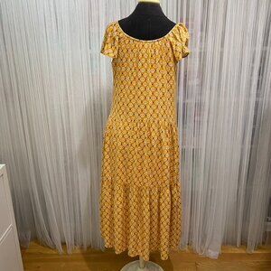 Knox Rose Tiered Midi Dress Size Medium Yellow Print Short Sleeve Boho