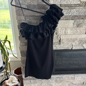 Zara | Black Ruffled Asymmetrical Cocktail Dress | Size Medium