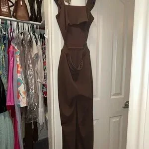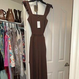 Super cute never worn with tags still attached. Bought 2 sizes and requested a return to late. Brown jumpsuit in size XS with flutter straps and open back. Bought from Dillards originally $49