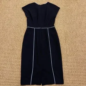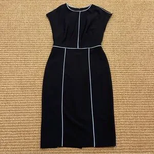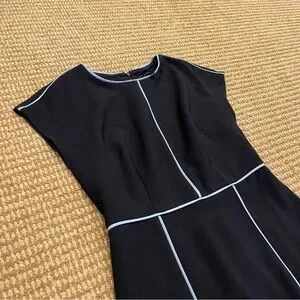 Maggy London Navy Blue Knee Length Shift Dress Contrast Piping 6