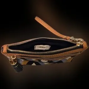 Stylish Spartina 449 Linen & Leather Tassel Wristlet - Navy/Light Blue/Light Brown/Cream - LIKE NEW!