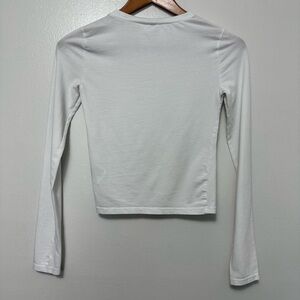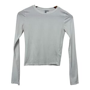 H&M Divided Basics Long Sleeve Crop White Tee Shirt Women’s Size Small Layering Preppy