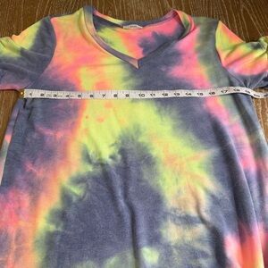 Jodifl Rainbow Tie Dye V-Neck Casual Tunic Top Women’s Size Medium Oversized